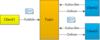 “一个客户端(Client1)对一个Topic发布了消息, 很多订阅了这个Topic的客户端(Client2, Client3) 都可以接收到这个消息的副本。”