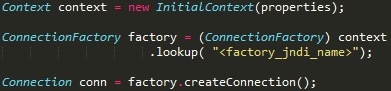 "这就简单了, 对程序员来讲,通过JNDI 就可以轻松拿到了, 例如:"