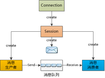 “不错, 其实消息生产者/消费者也应该由Session来创建,因为他们要发送/接收消息肯定是在一个会话中, 另外你想想, Session对象由谁来创建?”