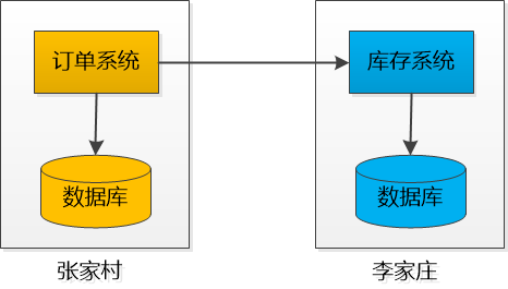 现在用户下了订单以后, 先在张家村保存, 然后由张家村调用李家庄的Web服务来通知库存系统。